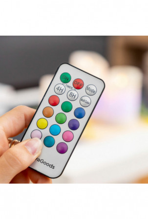 - Nuotolinio valdymo pultas, laikmatis: mūsų daugiaspalvėse LED žvakėse yra nuotolinio valdymo pultas, kad būtų patogiau ir paprasčiau naudoti. Jis veikia naudojant 1 x CR2025 bateriją (pridedamas) ir leidžia valdyti 3 žvakes atskirai arba visas kartu. Laikmatis suplanuoja automatinį išsijungimą po pasirinkto laiko (4 arba 8 valandų).
