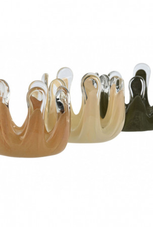 Žvakidė Home ESPRIT Žalia Kreminė Persikas Stiklas 12,5 x 12,5 x 9,5 cm (3 vnt.)