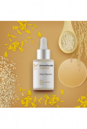 „Joyboost InnovaGoods Rice“ ryžių veido serumas atgaivina ir skaistina odą, didina jos lygumą ir elastingumą. Sudėtyje yra natūralių ingredientų. Veikliosios medžiagos: ryžių ekstraktas, medetkos, avižos, niacinamidas, hialurono rūgštis ir Symcalmin®.
