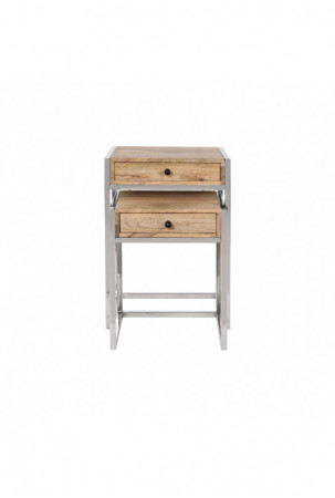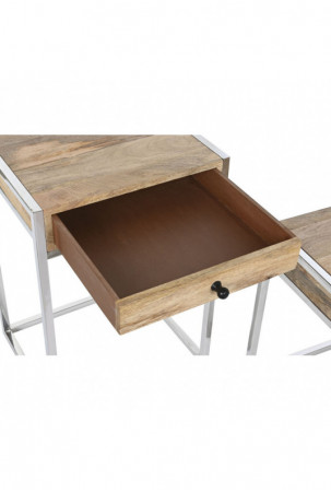 Dviejų staliukų rinkinys Home ESPRIT Ruda Sidabras Natūralus Plienas Mango mediena 45,5 x 41 x 66,5 cm