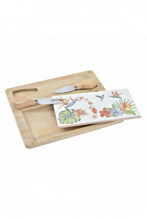 Lenta sūriui DKD Home Decor Bambukas Keramikos dirbinys 24,5 x 20 x 1,2 cm (4 vnt.)