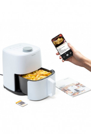 • Lengva naudoti: pasukite ratuką ir kepkite, skrudinkite skrebučius, garinkite, atitirpinkite, pašildykite ir kepkite ant grotelių. Pasirinkite kepimo laiką ir virkite su 95% mažiau riebalų, kad gautumėte išskirtinį ir sveiką maistą su iki 80% mažiau kalorijų. Yra QR magnetas su internetine receptų knyga, kurioje yra daugiau nei 100 receptų įvairiomis kalbomis.