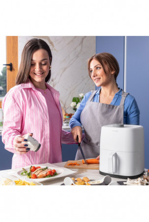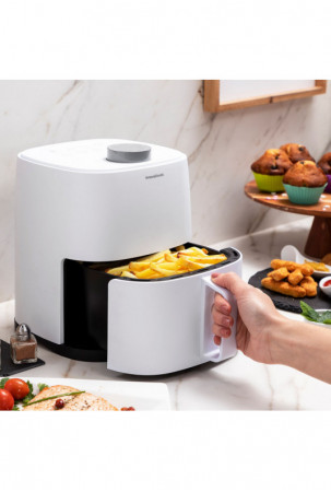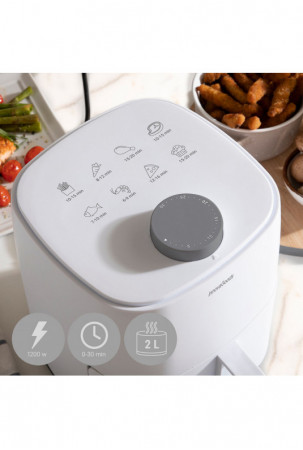 • Modernus ir kompaktiškas: Oro gruzdintuvės idealus dydis mažoms virtuvėms ir poroms.  Dėl savo 2L talpos jis maksimaliai išnaudoja turimą erdvę. Be to, turėdami 1200 W galią, per rekordiškai trumpą laiką gausite tobulą maisto gaminimą.