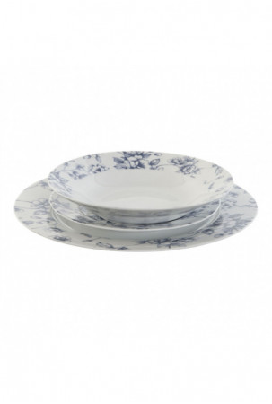 Indų Rinkinys Home ESPRIT Mėlyna Porcelianas Gėlėtas 18 Dalys 27 x 27 x 2 cm