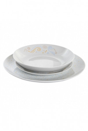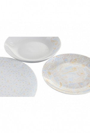 Indų Rinkinys DKD Home Decor Porcelianas Mėlyna Rožinė Balta 27 x 27 x 3 cm 18 Dalys