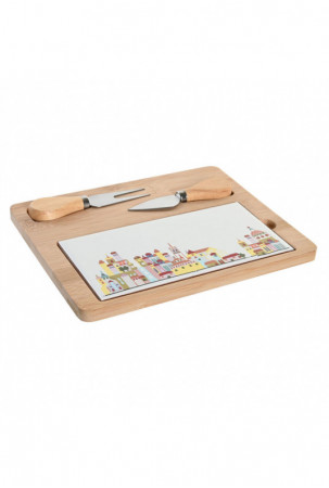 Rinkinys užkandžiams DKD Home Decor 24,5 x 20 x 1,2 cm Raudona Balta Spalvotas Keramikos dirbinys Cottage Namai