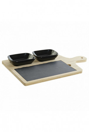 Rinkinys užkandžiams DKD Home Decor Juoda Natūralus Bambukas Plastmasinis Keramikos dirbinys Lenta Cottage 33 x 19,7 x 3,5 cm (4
