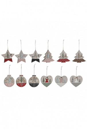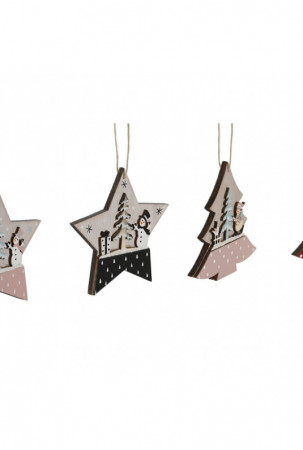 Kabantis dekoras DKD Home Decor Raudona Rožinė Medžio 23 x 1,5 x 9 cm (6 Dalys) (4 vnt.)