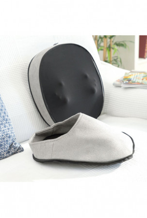 Universalus du viename šiatsu šilumos masažuoklis su ergonomiška ir daugiafunkcine konstrukcija, suteikiančia malonų ir atpalaiduojantį palengvėjimo, poilsio ir gerovės jausmą. Jis daugiausiai naudojamas pėdų masažui, tačiau taip pat gali būti naudojamas kitoms kūno vietoms (kaklui, juosmens sričiai, kojoms ir nugarai). Viršutinė dalis, į kurią dedate kojas, yra nuimama su užtrauktuku, kad būtų lengva nuimti ir naudoti masažuoklį kaip kelių padėčių masažo pagalvę. 8 besisukančios galvutės atlieka dviejų krypčių judesį, kad masažas suteiktų gilų minkymo efektą, atpalaiduojantį pėdas ir padus. Jis turi 3 greičius, todėl galite pasirinkti didesnio ar mažesnio intensyvumo masažą. Infraraudonųjų spindulių šilumos funkcija padidina ir pagerina masažo efektyvumą, tačiau ji neprivaloma, ją galite įjungti arba išjungti pagal pageidavimą. Šis elektrinis masažuoklis yra kompaktiškas, kad jį būtų lengviau transportuoti ir laikyti. Jis yra minkštas ir malonus liesti ir labai lengvas naudoti su automatiniu išjungimu. Jis veikia naudojant tinklo adapterį (pridedamas).