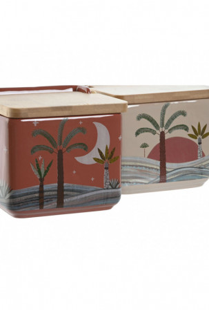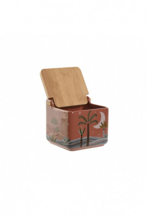 Druskinė su dangteliu Home ESPRIT Rusvai gelsva Rožinė Degtas molis Alyvinė Bambukas 750 ml 14 x 12,5 x 12 cm (2 vnt.)