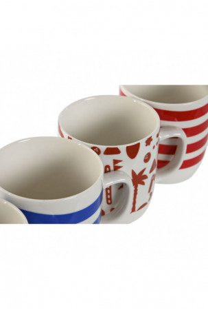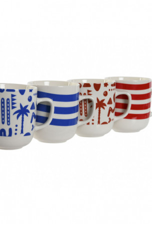 Puodelis Home ESPRIT Mėlyna Raudona Porcelianas Boho 380 ml (4 vnt.)