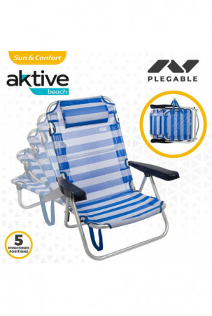 Paplūdimio kėdė Aktive Sulankstomas Pagalvėlė Balta Mėlyna 48 x 84 x 46 cm (2 vnt.)