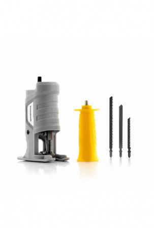 Jrill InnovaGoods pjūklinis gręžimo adapteris yra labai praktiškas naudoti daugybėje pasidaryk pats projektų, nes jis labai lengvai paverčia grąžtą pjūklu. Paprastas būdas pridėti daugiau vertės ir naudoti kitiems elektriniams įrankiams. Be to, jame yra nuimama kelių padėčių rankena ir keli keičiami dantyti peiliai, kuriuos galima naudoti ant skirtingų tipų paviršių.