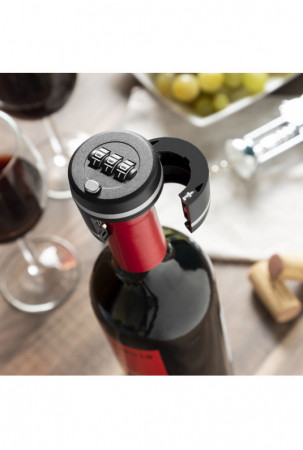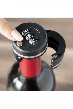 Modernaus ir elegantiško dizaino kombinuota vyno butelių spyna, kuri labai naudinga norint laikyti butelius uždarytus, kad jų nebūtų galima atidaryti nežinant 3 skaitmenų kodo. Šis apsauginis užraktas neleidžia vaikams ar kitiems neįgaliotiems asmenims pasiekti butelio turinio. Jame yra užraktas, skirtas norimam slaptažodžiui įvesti ir išsaugoti, ir užrakinimo / atrakinimo mygtukas, skirtas užraktui atidaryti, kai parenkama tinkama kombinacija. Jis veikia rankiniu būdu ir jį labai paprasta naudoti, tereikia vadovautis su juo pateiktomis instrukcijomis. Užraktas tvirtai laikosi ir tinka vyno ar kitiems buteliams. Jį galima naudoti buteliams, kurių kaklelio skersmuo yra ne didesnis kaip 28 mm, t. y. daugumai butelių. Jis užima mažai vietos, yra lengvas, jį lengva transportuoti ir laikyti.