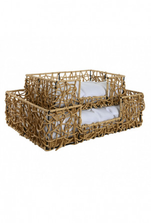 Jei ieškote naujų prekių tendencijų rinkoje, pristatome Gyvūnų lova Home ESPRIT Balta Šviesiai rudas Metalinis sintetinis rotangas 50 x 35 x 14 cm (2 Dalys)!