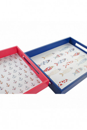 Užkandžių dėklas DKD Home Decor Mėlyna Koralas Medžio MDF Viduržemio 40 x 30 x 5 cm (2 vnt.)