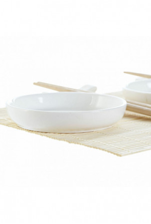 Suši rinkinys DKD Home Decor Bambukas Plastmasinis Keramikos dirbinys Balta Natūralus Rytietiškas 28,8 x 19,8 x 3 cm (7 Dalys) (