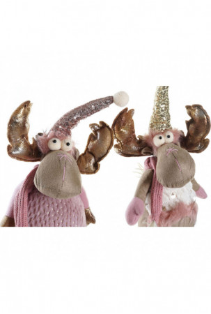 Kalėdų papuošalai DKD Home Decor Balta Rožinė Auksinis Šiaurės elnias 15 x 17 x 50 cm (2 vnt.)