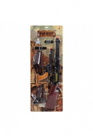 Medžiaga: PlastmasinisApytiksliai matmenys: 62 cm30 cm20 cmPridedama: DiržasGinklas x 2Kaubojus šautuvasŽvaigždė