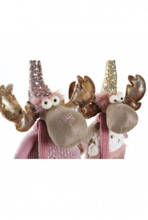 Kalėdų papuošalai DKD Home Decor Balta Rožinė Auksinis Šiaurės elnias 20 x 19 x 50 cm (2 vnt.)