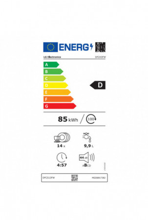 Indų plovimo mašina LG DF243FW Balta 60 cm