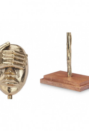 Dekoratyvinė figūrėlė Veidas Auksinis Medžio Metalinis 16 x 34 x 10 cm