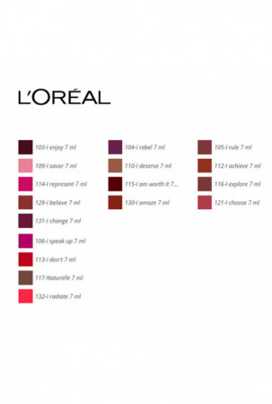 Lūpų dažai Rouge Signature L'Oreal Make Up (7 ml) 7 ml yra tai, ko tau reikia, maksimaliai padidinti savo žavesiui! Išbandyk 100% originalių produktų L'Oreal Make Up kokybę ir leisk geriausiems profesionalams atskleisti tavo grožį.