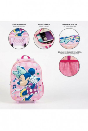 3D mokyklinis krepšys su ratukais Minnie Mouse Rožinė 25,0 x 31,0 x 10,0 cm