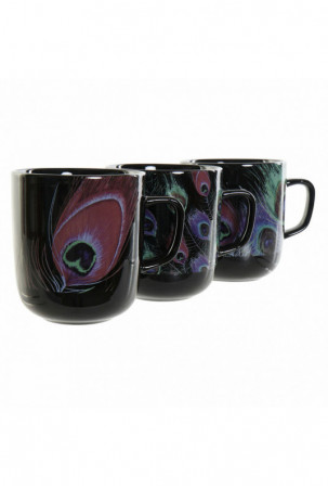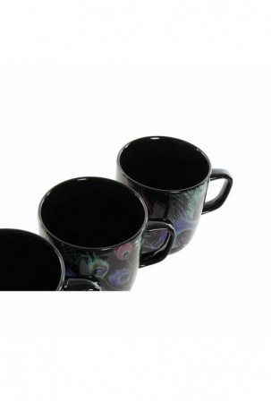 Puodelis DKD Home Decor Porcelianas Juoda Rožinė (11.5 x 8.5 x 10 cm) (3 pcs) (380 ml)