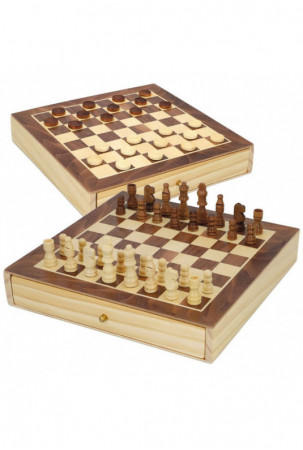 Šachmatų ir šaškių žaidimų lenta Colorbaby Stalčius Medžio (4 vnt.)