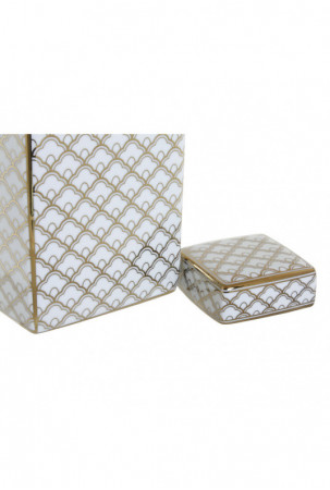 Vaza DKD Home Decor 14,5 x 14,5 x 30 cm Porcelianas Auksinis Balta