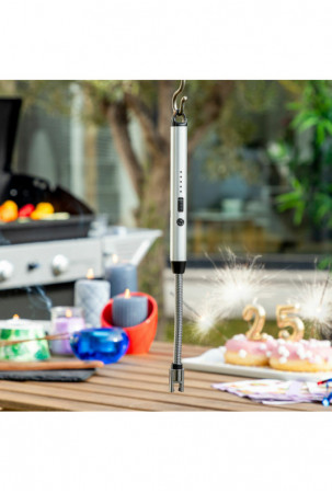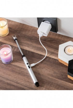 Šis įkraunamas ir lankstus elektrinis žiebtuvėlis idealiai tinka naudoti patalpose ir lauke, nes jo neišpučia vėjas, jis gali pasiekti sunkiai pasiekiamas vietas ir leidžia laikytis didesnio atstumo nuo uždegimo vietos, kad išvengtumėte nudegimų. Pridedamas USB ir mikro USB laidas.