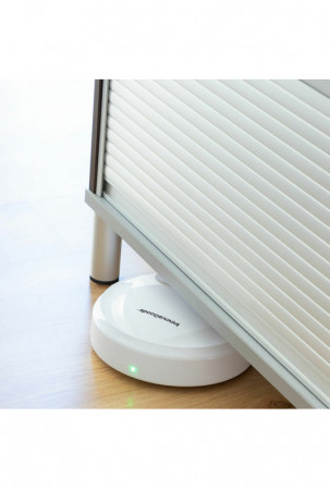 Šis modernus grindų siurblys robotas keičia kryptį susidūręs su kliūtimis ir dėl savo jutiklių bei itin plokščios konstrukcijos telpa po dauguma baldų.